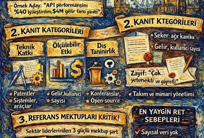 Bu kategori özellikle Exceptional Talent seviyesinde, seni diğer mühendislerden ayıran unsurların somut, ölçülebilir ve bağımsız olarak doğrulanabilir şekilde ortaya konmasını gerektirir. Değerlendirme süreci bir HR elemesinden çok, akademik bir jüri değerlendirmesine benzer. Bu nedenle başvuru dosyan da bir CV değil; iyi kurgulanmış bir dosya, hatta bir argümantif anlatı olmalıdır.