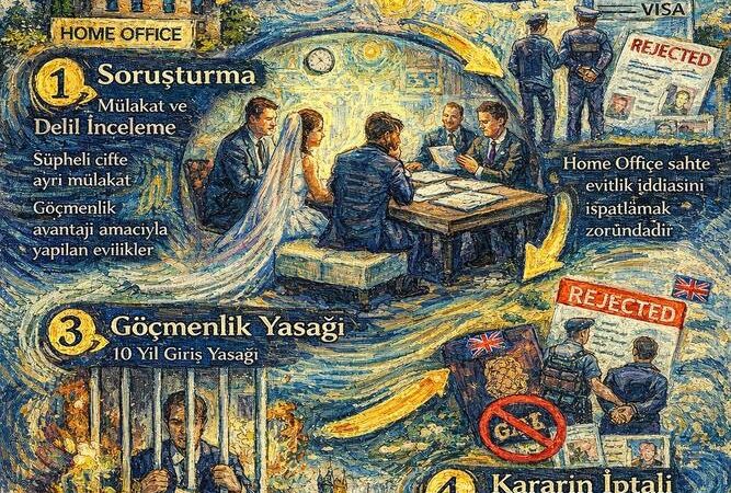İngiltere’de sahte evlilik (sham marriage) nedir? Home Office sahte evlilikleri nasıl tespit eder, vize reddi ve deportation riskleri nelerdir? Göçmenlik hukukunda sahte evlilik incelemeleri ve itiraz yolları hakkında detaylı rehber.